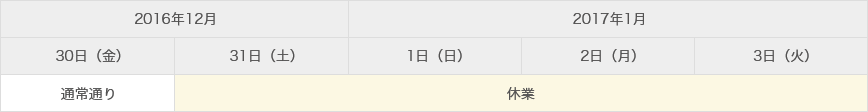| 2016年12月27日(火)17時以降に完了 | 年明け(2017年1月4日(水)以降)に対応 |