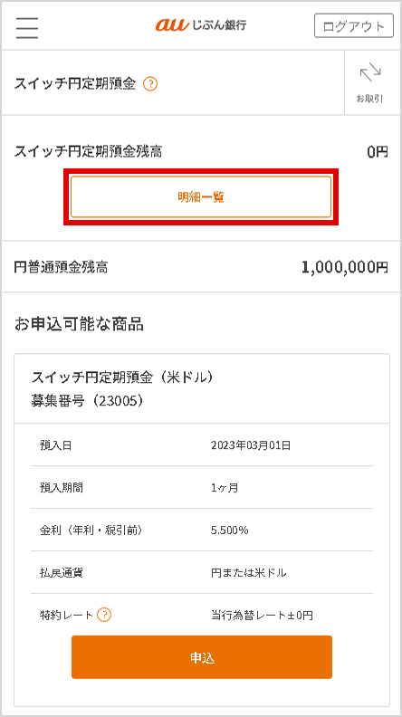 詳細を確認して、[スイッチ円定期預金を申込む]を選択