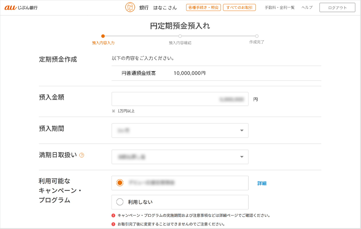 特別金利が適用される預入額に上限はございません。ただし、預入総額に達した場合、お取り扱いを終了します。