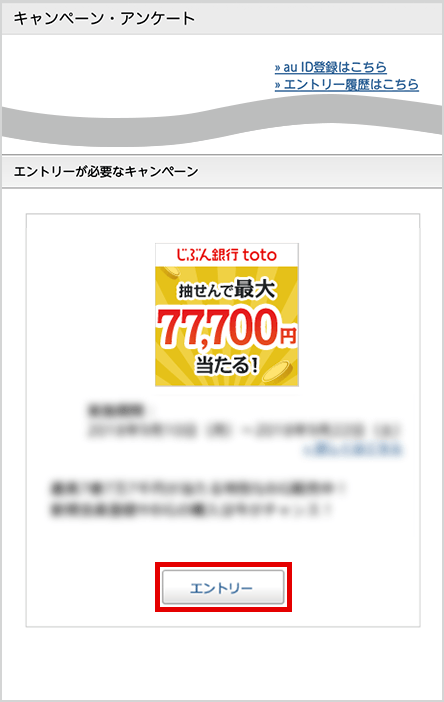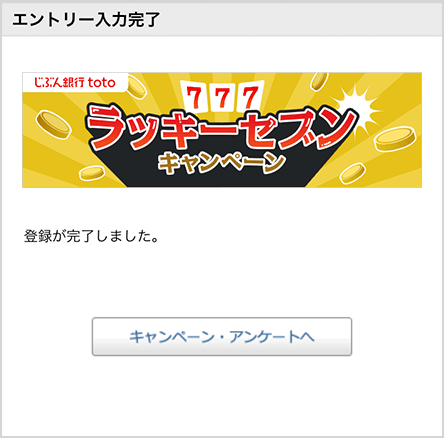 キャンペーンページのエントリーボタンを押してログイン後、「じぶん銀行toto ラッキーセブンキャンペーン」を選んでエントリーボタンを押す