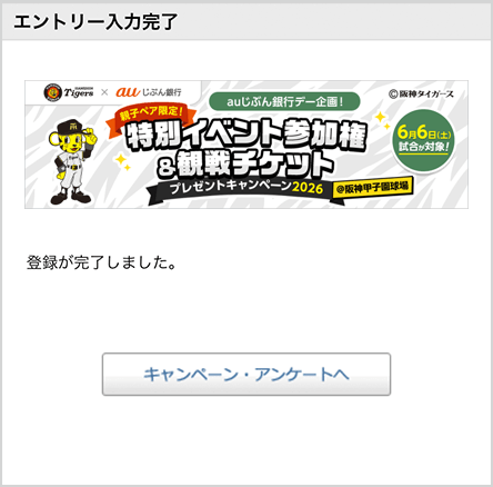 • 観戦チケットは2026年6月6日(土)のauじぶん銀行デー当日に、阪神甲子園球場にて当社スタッフより直接お渡しします。その後、各イベントへご案内いたします。